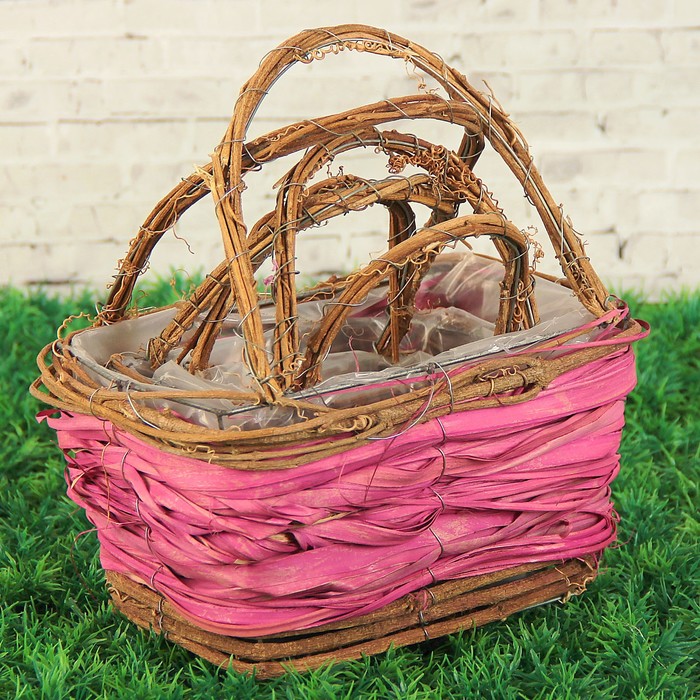 Набор корзин плетёных, ротанг, 12,5x8x17/16,5x11x20/21x14x26, 3 шт, фиолетовый