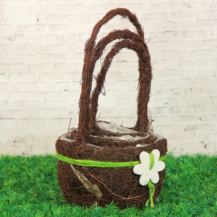 Набор корзин, ротанг, керамика, 12x25/16x31/20x37, 3 шт, натуральный