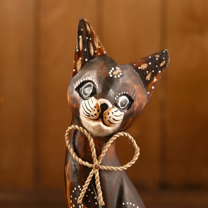 Индонезия считается «страной кошек». Индонезийский народ довольно трепетно относятся к кошкам и считают, что это домашнее животное олицетворяет любовь. Чаще всего именно кошек изображают на картинах, панно, создают удивительные статуэтки, стараясь сделать их разных цветов и форм. Набор кошек сувенирных "Кошки с бабочкой на шейке", 3 шт станет актуальным подарком на любой праздник будь то свадьба или новоселье, День рождения или юбилей, ведь кошка символизирует тепло домашнего очага, грациозность, красоту и свободу.