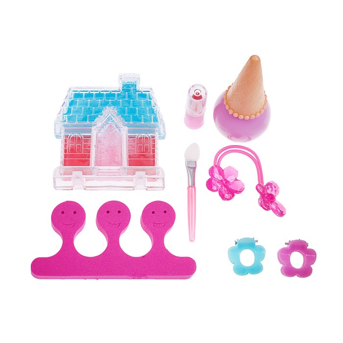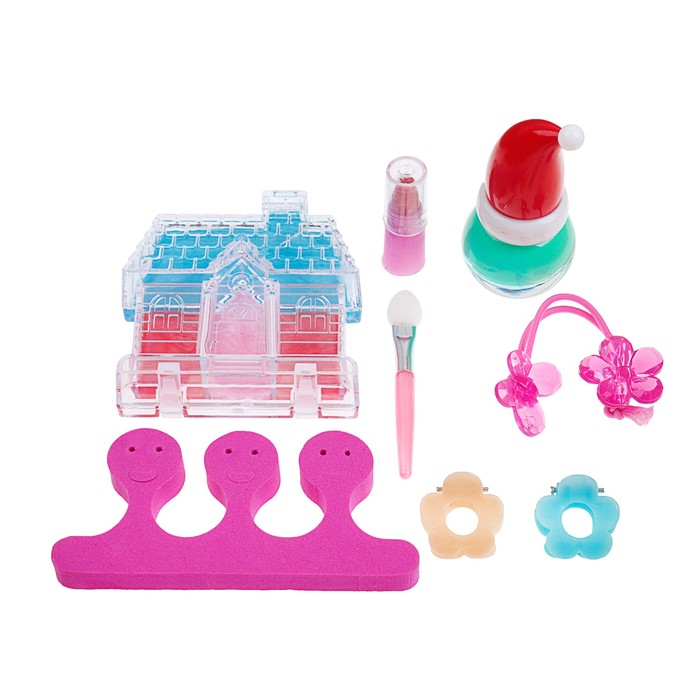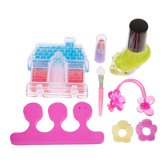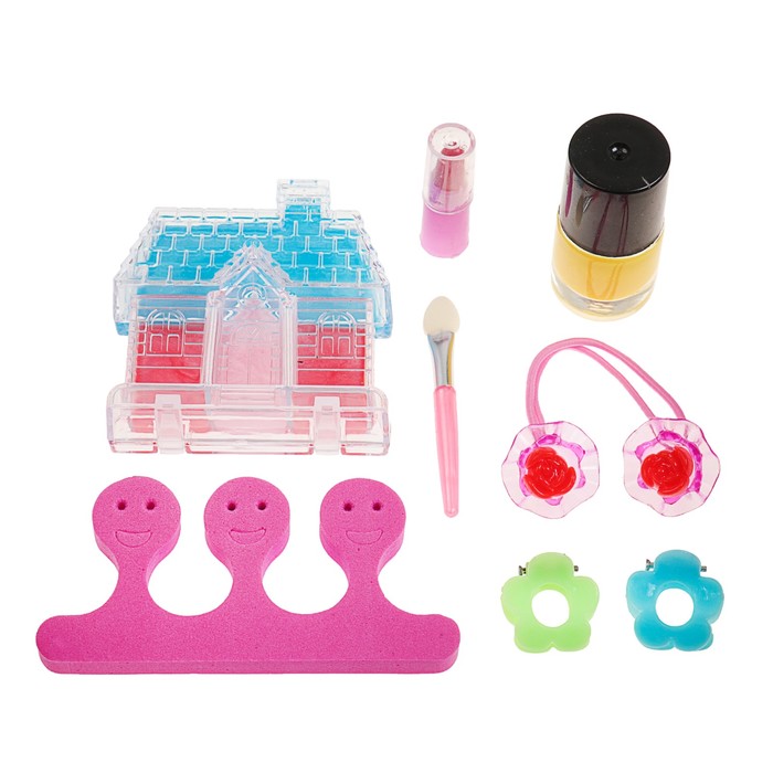 Набор косметики для девочки блеск д/губ,помада,резинка,лак МИКС,разделитель,аппликатор.