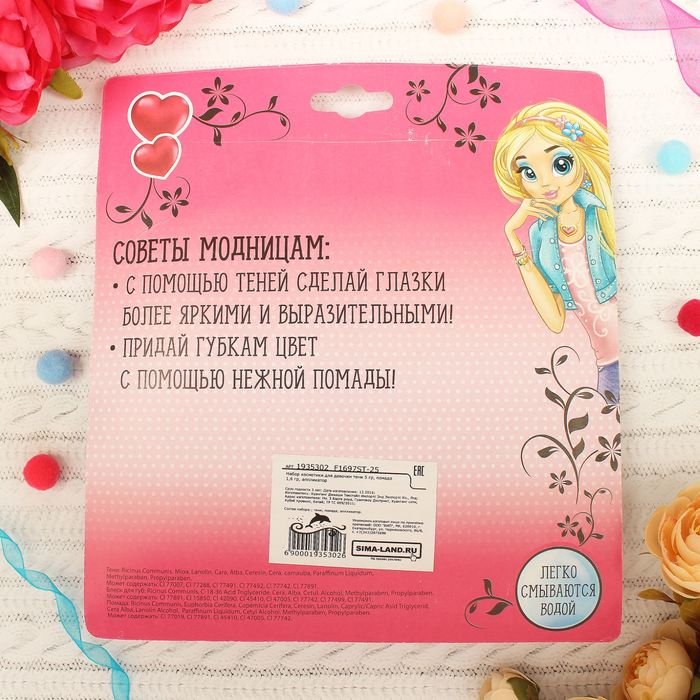 Набор косметики для девочки "Цветочек": тени, помада, аппликатор