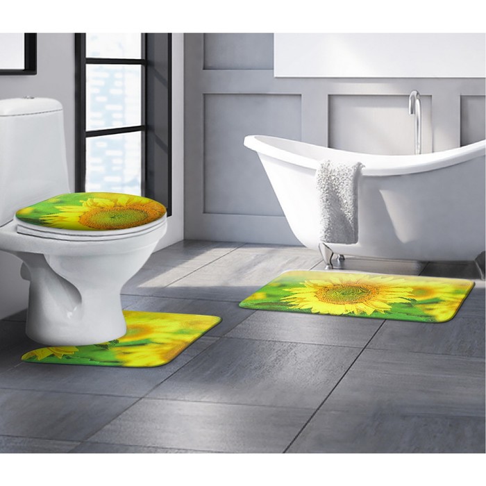 Набор ковриков для ванной и туалета 3 шт "Подсолнухи"