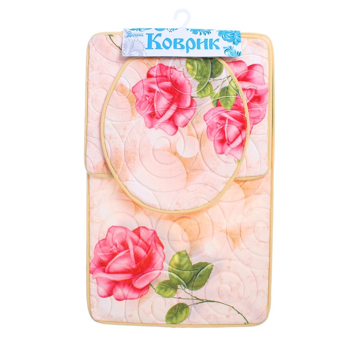 Набор ковриков для ванной и туалета 3 шт "Розы"