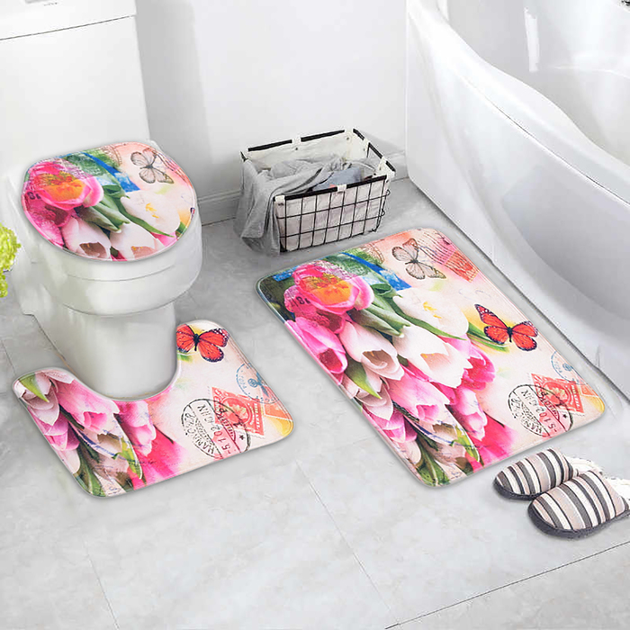 Набор ковриков для ванной и туалета 3 шт "Тюльпаны"