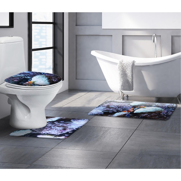 Набор ковриков для ванной и туалета "Морское дно", 3 шт