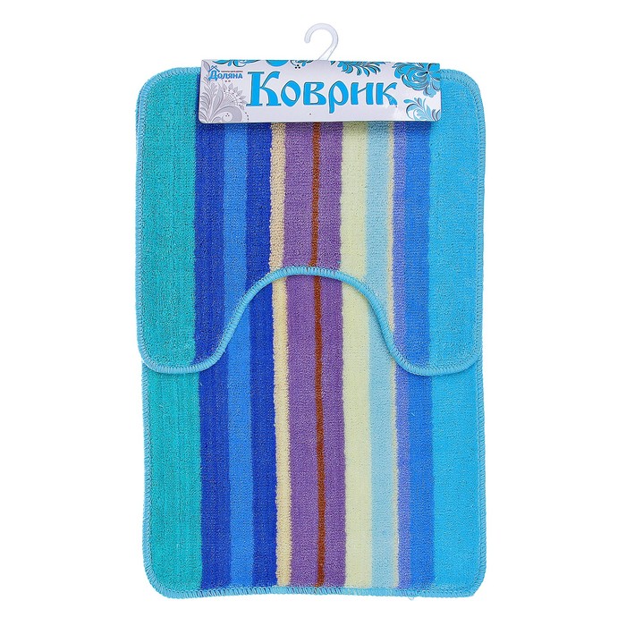 Набор ковриков для ванной и туалета "Полоски" 2 шт, цвет голубой