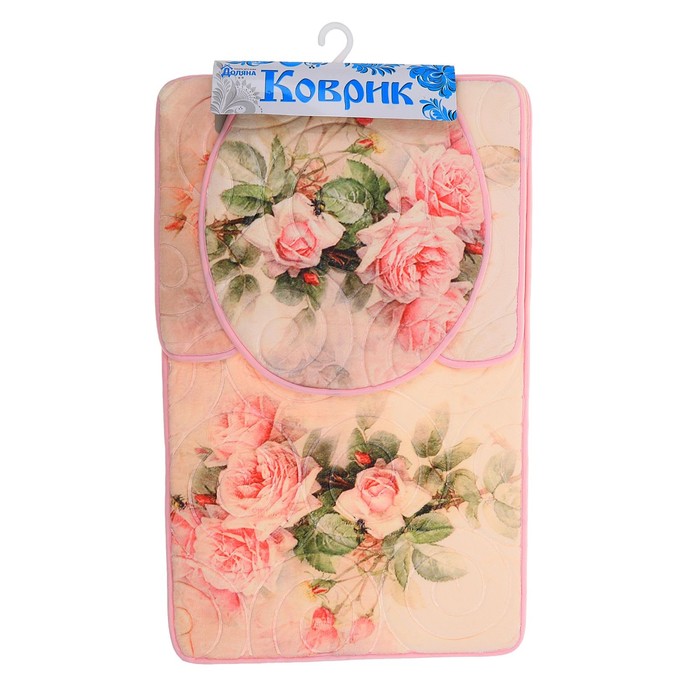Набор ковриков для ванной и туалета "Роза" 3 шт, цвет розовый