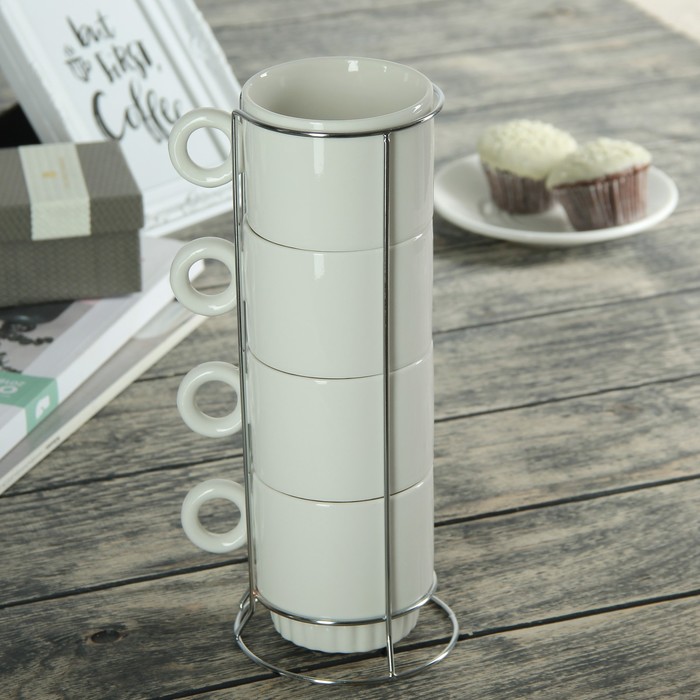 Набор кружек 250 мл "Путешествие", 4 шт, на металлической подставке