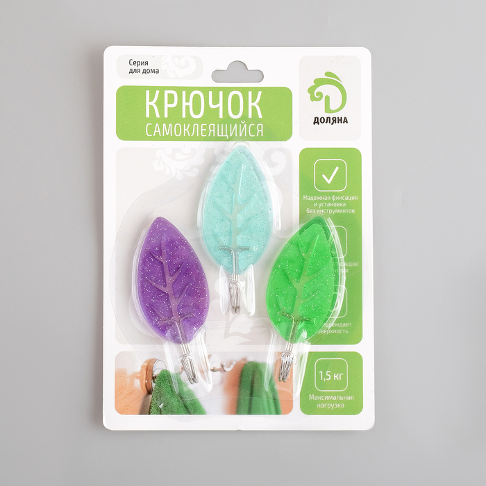 Набор крючков на липучке "Листья", 3 шт, цвет МИКС