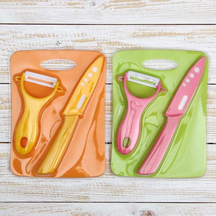 От качества посуды зависит не только вкус еды, но и здоровье человека. Набор кухонный, 3 предмета: ножа 10 см, овощечистка, доска,20х15 см, цвета МИКС — товар, соответствующий российским стандартам качества. Любой хозяйке будет приятно держать его в руках. С нашей посудой и кухонной утварью приготовление еды и сервировка стола превратятся в настоящий праздник.