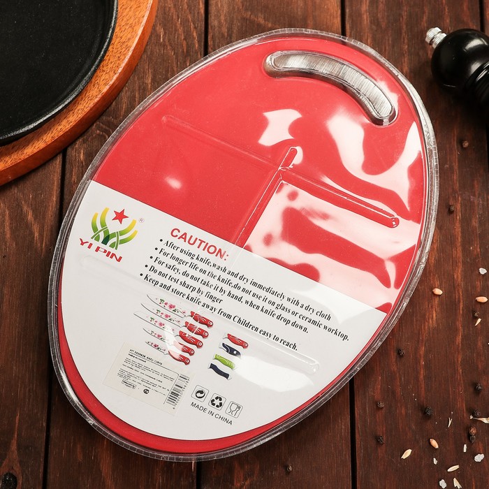От качества посуды зависит не только вкус еды, но и здоровье человека. Набор кухонный, 4 предмета: нож, ножницы с антиналипающим покрытием, овощечистка, доска, цвет красный — товар, соответствующий российским стандартам качества. Любой хозяйке будет приятно держать его в руках. С нашей посудой и кухонной утварью приготовление еды и сервировка стола превратятся в настоящий праздник.