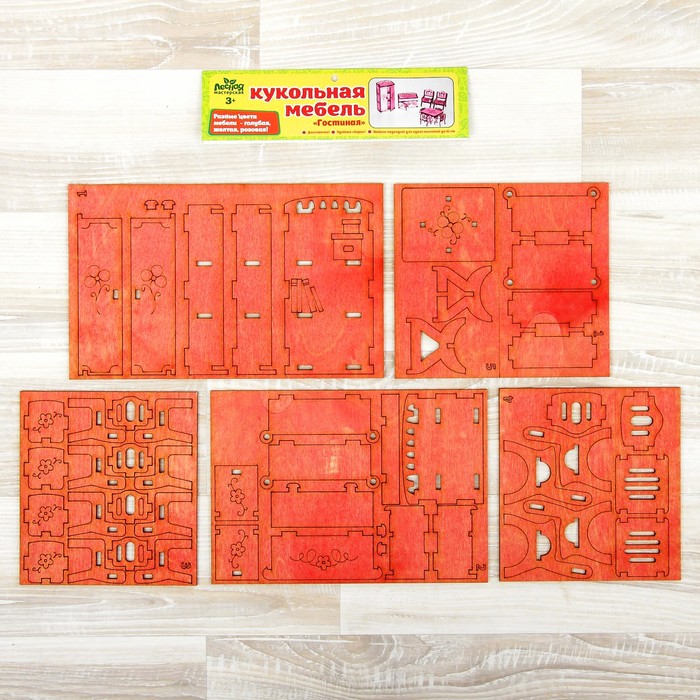 Собрать мебель очень просто — аккуратно выдавите из основы элементы и соедините между собой с помощью специальных пазов. Набор также можно использовать как основу для творчества: детали можно расписать вместе с ребёнком маркерами или акриловыми красками.