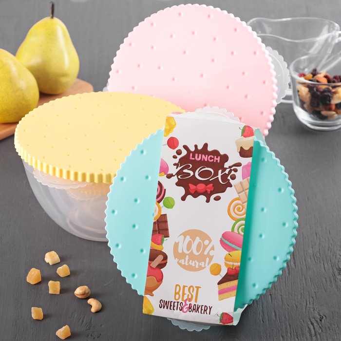 Набор ланч-боксов круглых 3 шт "Печенье" 22х19/17х15/13х11 Цвет МИКС