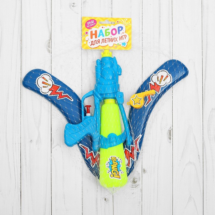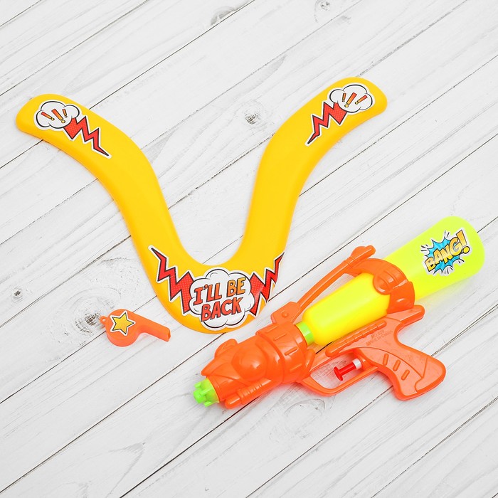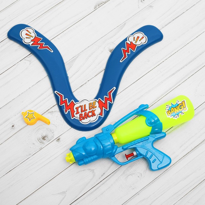 Набор летних игрушек"I'll be back": бумеранг, свисток, водный пистолет), цвета МИКС