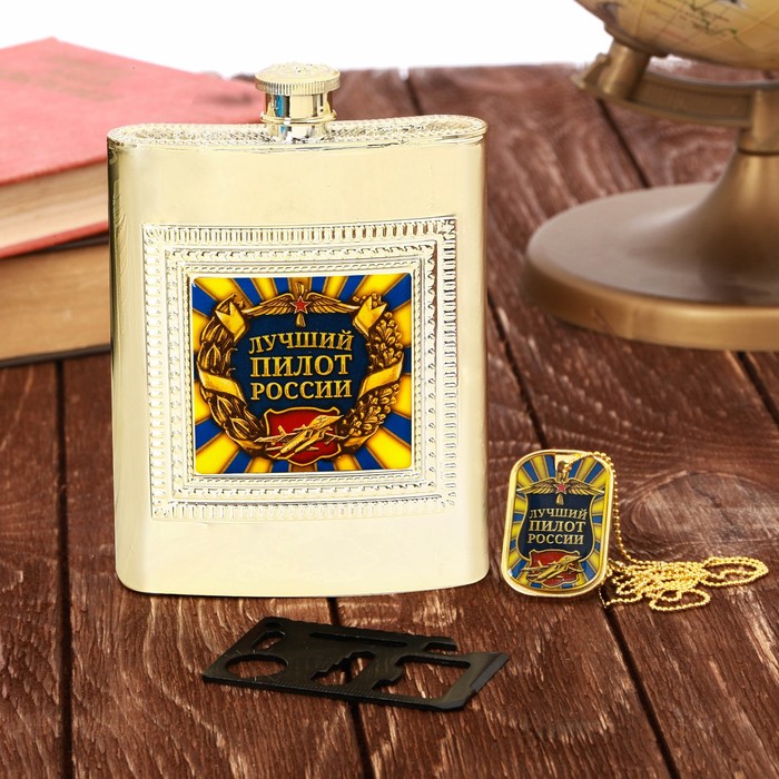 Набор "Лучший пилот России", фляжка 240 мл, нож-кредитка 10 в 1, жетон