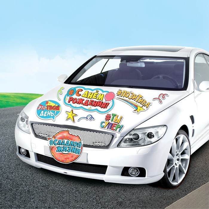 Набор магнитов на авто "С днем рождения!"