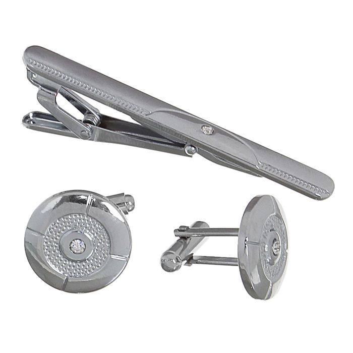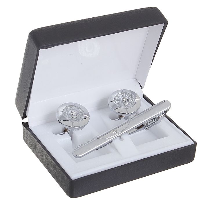 Набор мужской "Запонки + зажим для галстука", круг точечное нанесение, цвет серебро