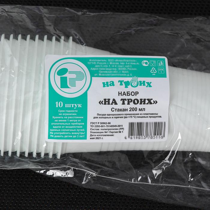 Набор "На троих": стакан 200 мл прозрачный, 10 шт