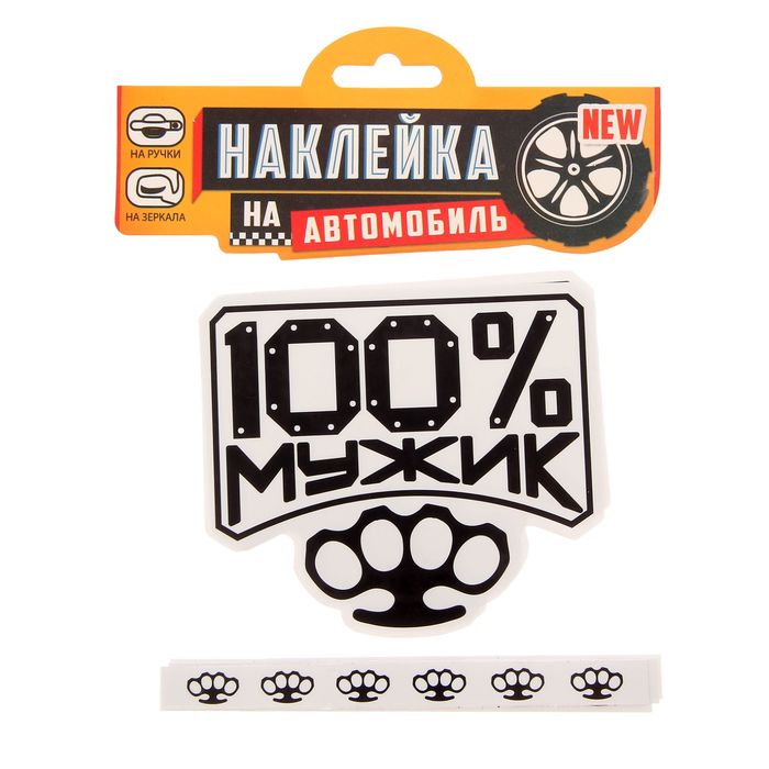 Сделайте ваш автомобиль по-настоящему уникальным! Оригинальный набор наклеек на внешние ручки и боковые зеркала авто "100% мужик" сделает железного коня неповторимым.