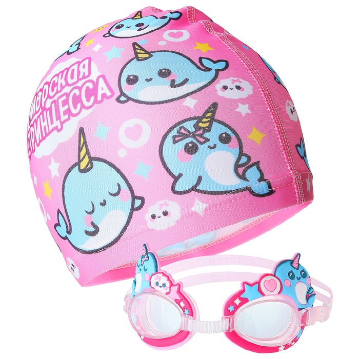 Набор «Нарвалы», очки + шапочка для плавания
