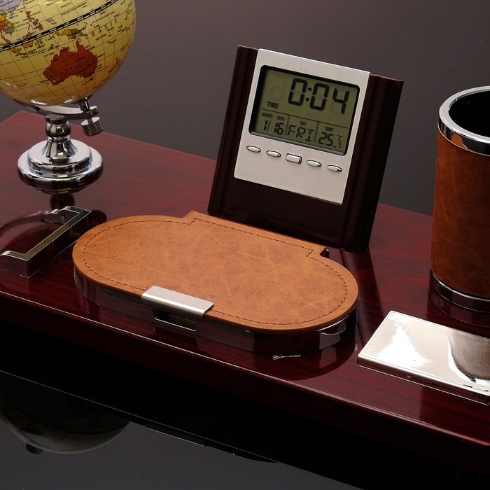 Набор настольный 6в1(глобус, часы, скрепочница, карандащница, блок д/бумаги, лого), 20х42 см