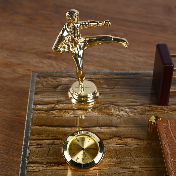 Набор настольный «Золото»: часы, визитница, блок для бумаги, подставка для ручек, лоток для скрепок