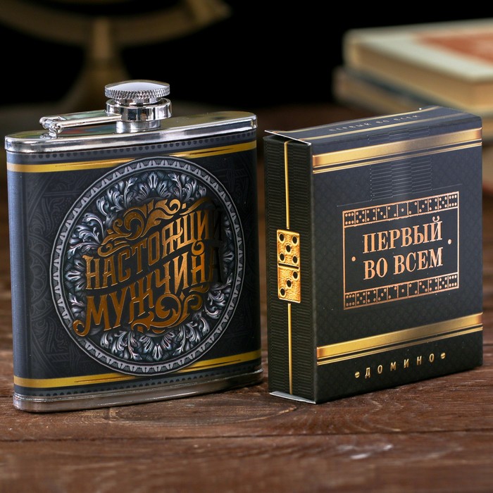 Набор "Настоящий мужчина", фляжка 180 мл, домино