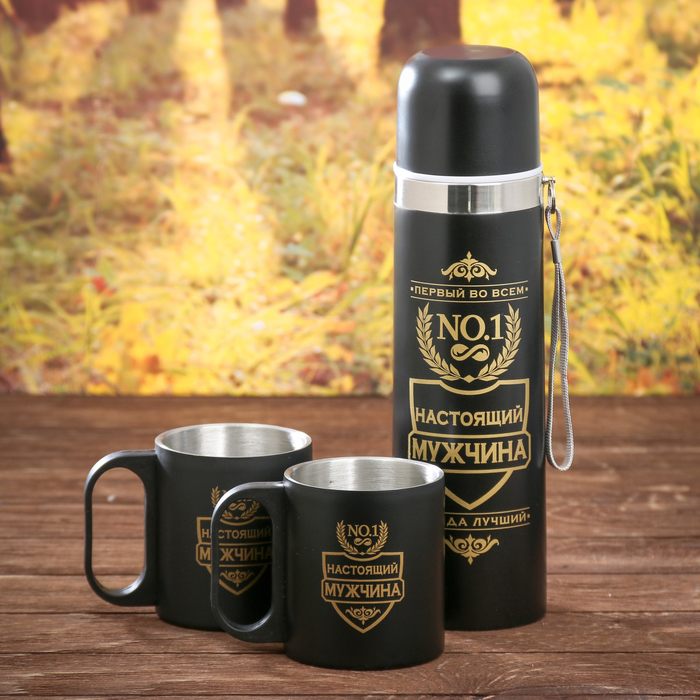 Набор "Настоящий мужчина", термос 500 мл, кружка 2 шт