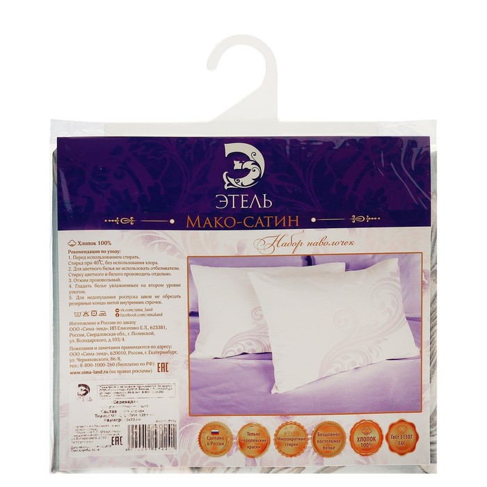Комплект наволочек соответствует стандартам ГОСТ 31307 и имеет европейский сертификат качества Oeko-Tex.09.HRU.73228.
