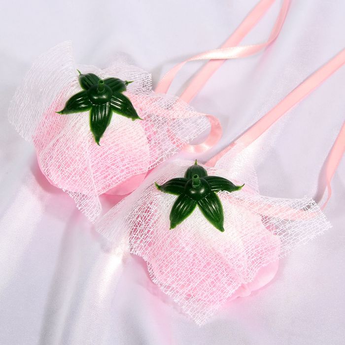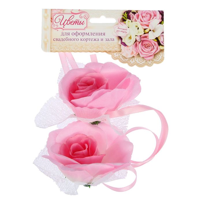 Чудесный набор для декора свадебного автомобиля состоит из двух цветов на лентах. Украсьте с его помощью ручки машины, зеркала или капот. Текстильные цветы также можно использовать при оформлении зала или свадебных бокалов.