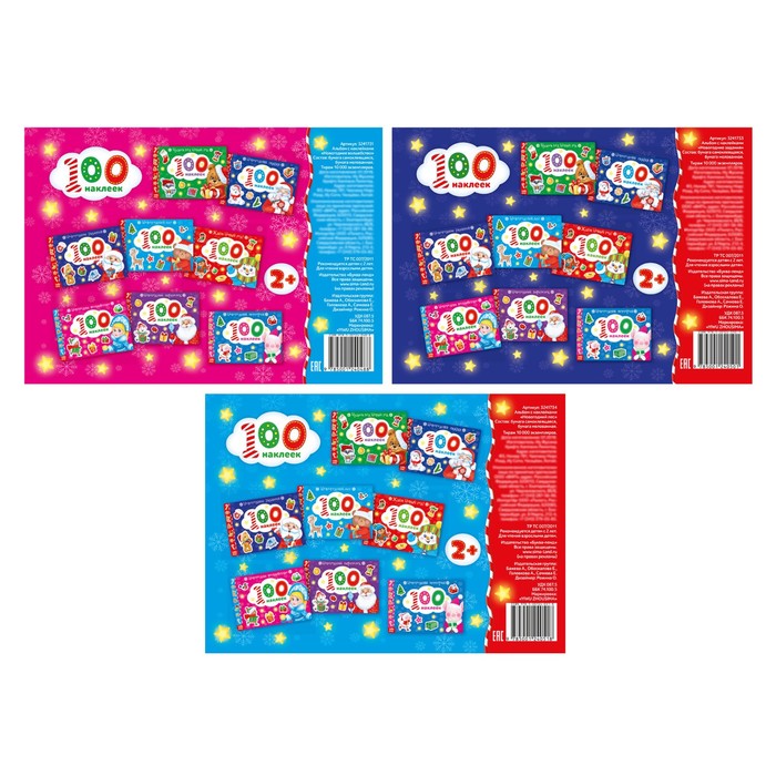 Набор новогодних альбомов "100 наклеек" 3 шт №1 12 стр