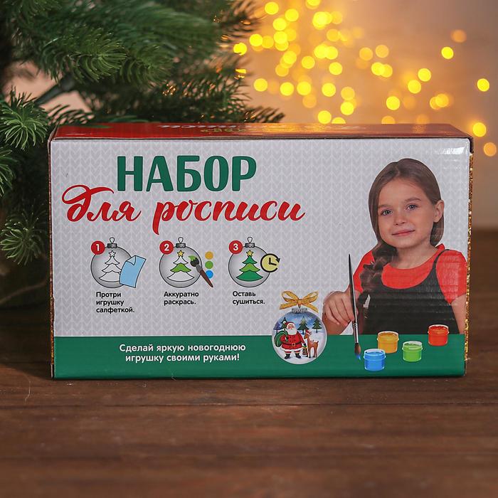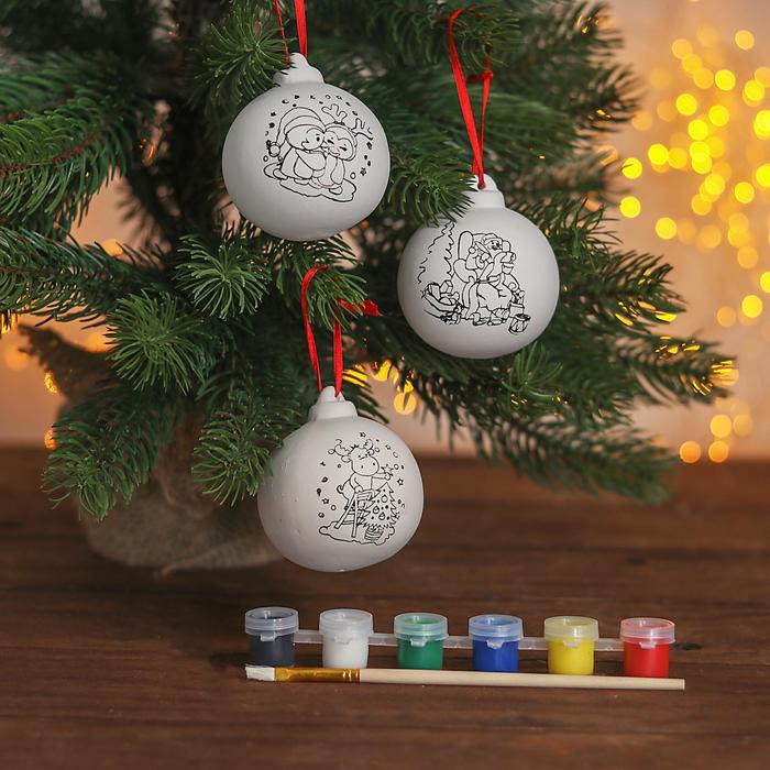Набор новогодних шаров под раскраску 3 шт "Трио №4" с подвесом, краска 6 цв по 2 мл, кисть