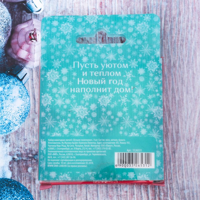 Набор новогодних свечей "Лучшие пожелания", 4 шт.