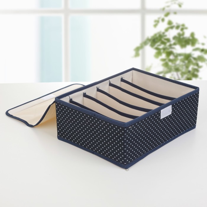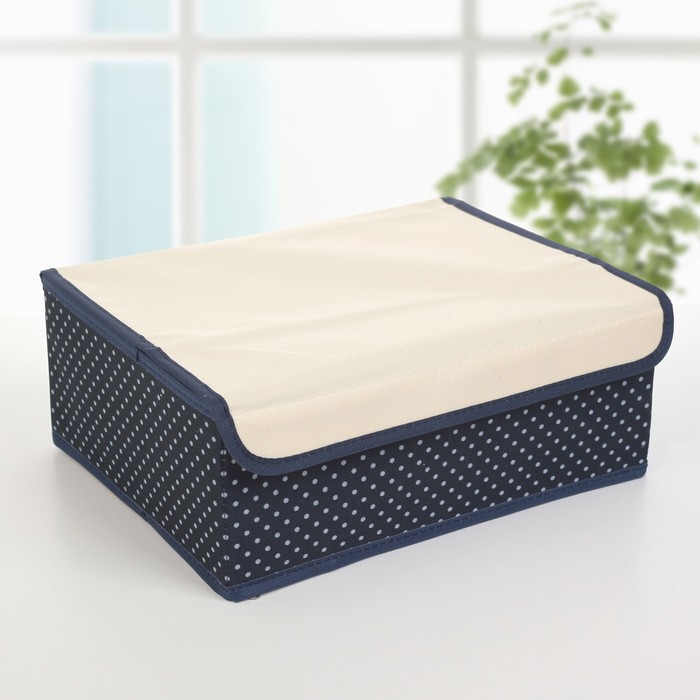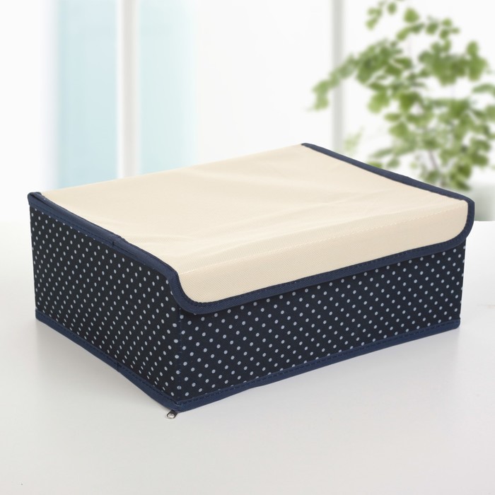 Набор органайзеров для белья с крышкой, 3 шт, "Горох" 32х24х12 см, тёмно-синий