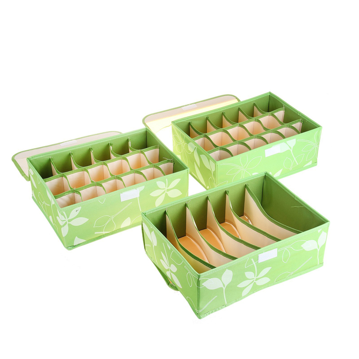 Набор органайзеров для белья с крышкой 34х24х12 см, "Листочки" 3 шт, цвет зеленый