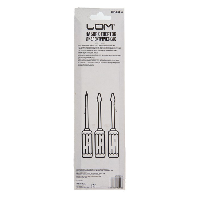 Набор отверток диэлектрических LOM, тестер, 3 предмета