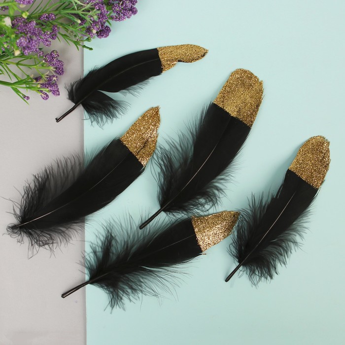 Набор перьев для декора 5 шт, размер 1 шт 13,5*2, цвет черный