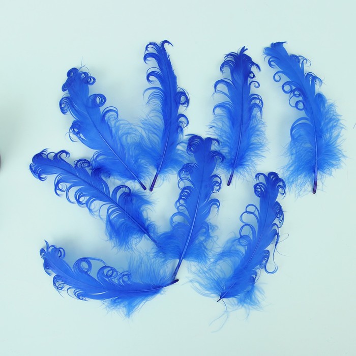 Набор перьев для декора 8 шт, размер 1 шт 13,5*2, цвет синий