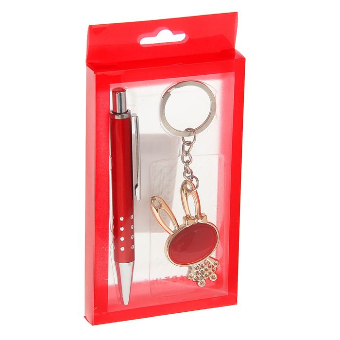 Набор подарочный 2в1 (ручка, брелок «Зайка»), в блистере, красный, 7х12.5 см