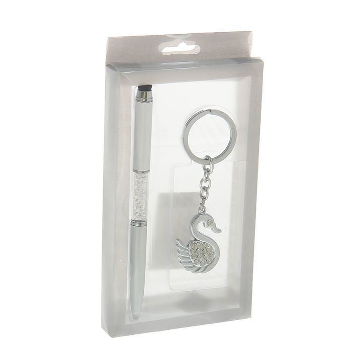 Набор подарочный 2в1 в блистере (ручка с кр.+брелок Лебедь со стразами) хром 9*16см
