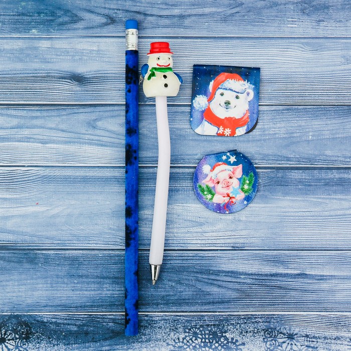 Набор подарочный "Новогодний" карандаш 2 шт., 2 закладка 2 шт., ручка