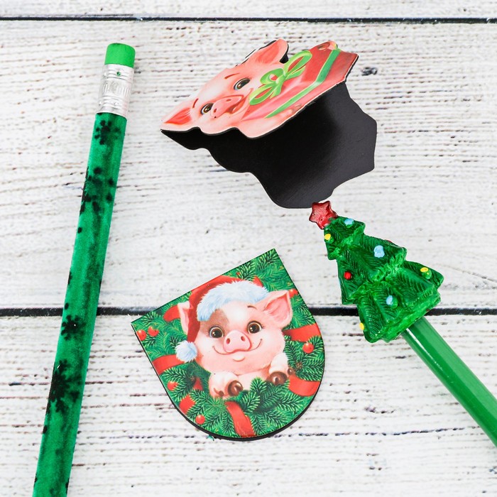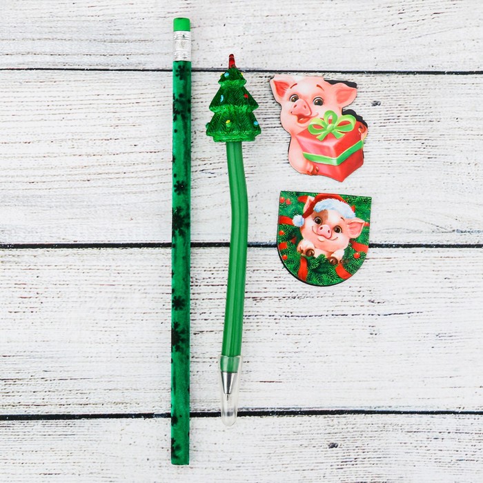 Набор подарочный "Подарок от свинки" карандаш 2 шт., 2 закладка 2 шт., ручка