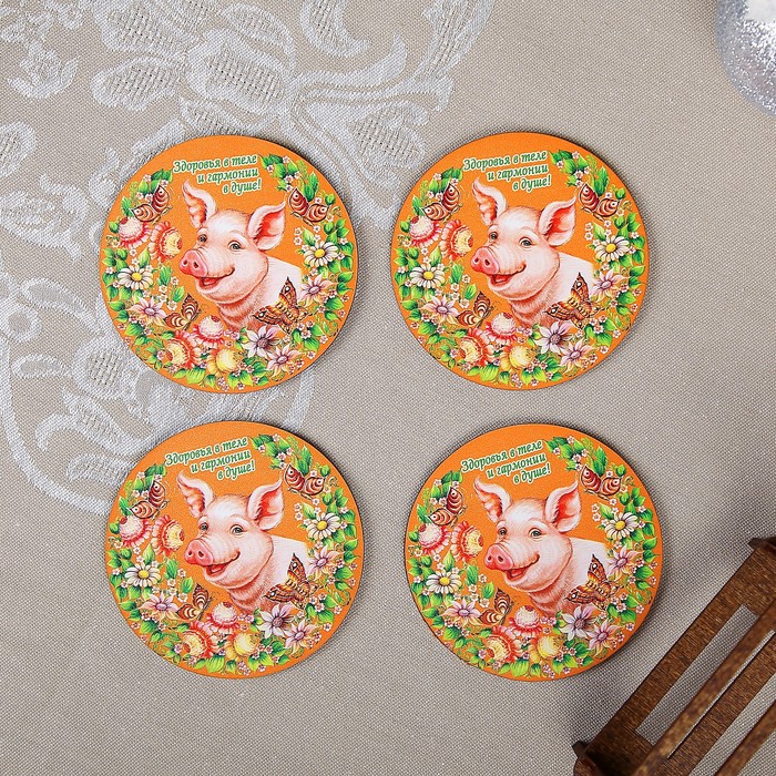 Набор подставок под горячее «Свинка», здоровья в теле, 4 шт, D=9 см