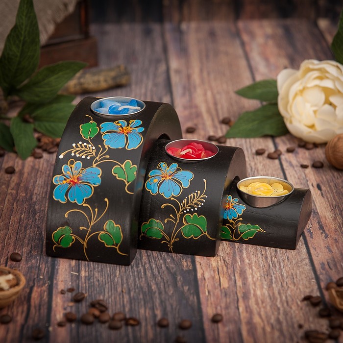 Набор подсвечников из мангового дерева "Цветок" 17,5х6х8,5 см