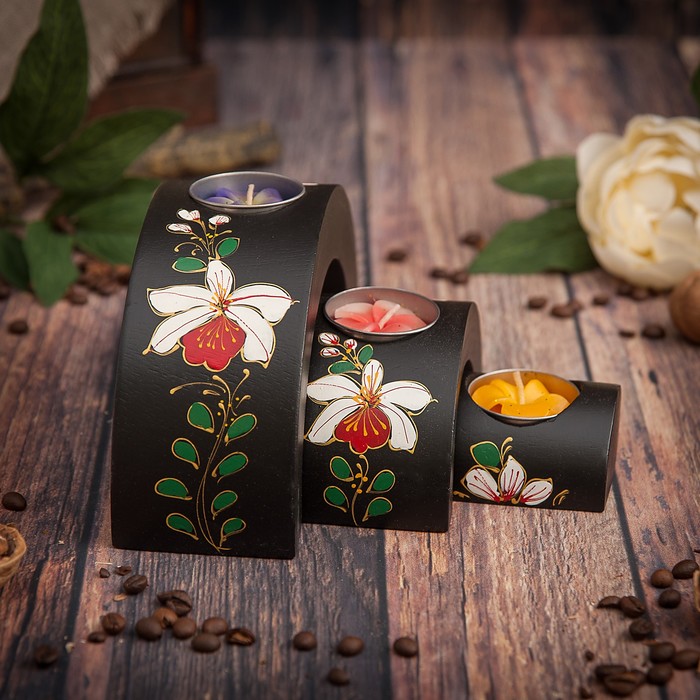 Набор подсвечников из мангового дерева "Цветы" 17,5х6х8,5 см