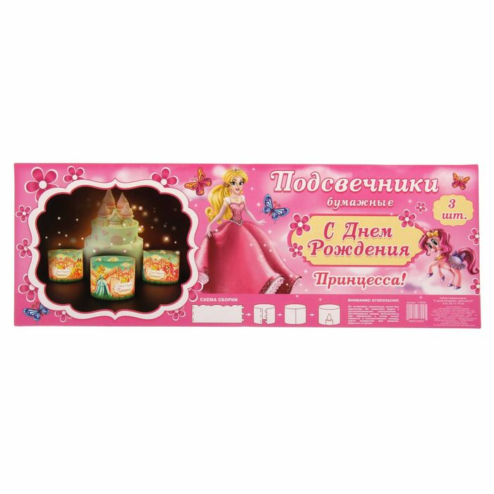 Набор подсвечников "С днем рождения, принцесса!", 3 шт.