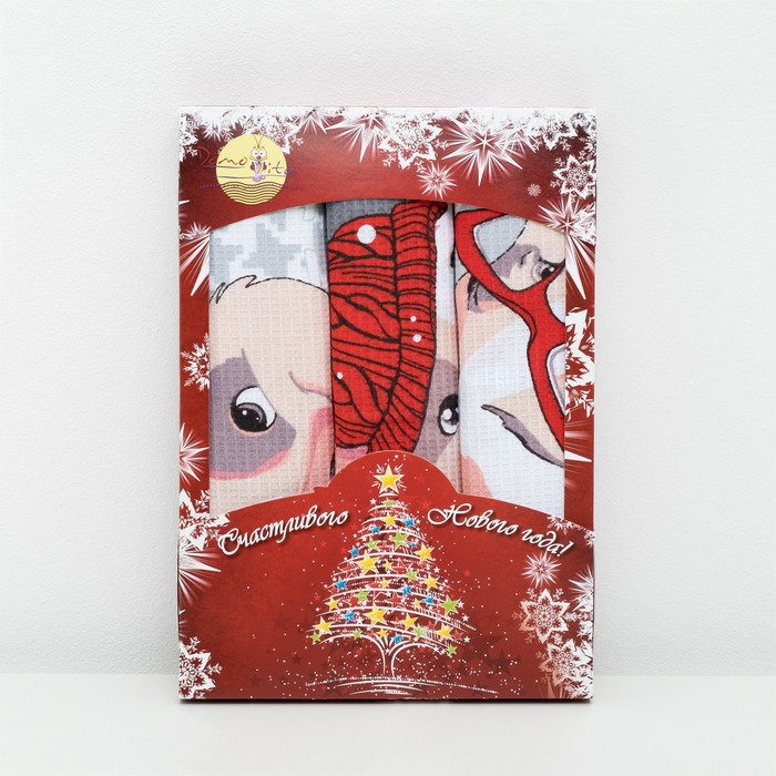 Набор полотенец DomoVita "Веселые поросята" серый вафля 170 г/м2, 45х60 см 3шт (в коробке) 37924