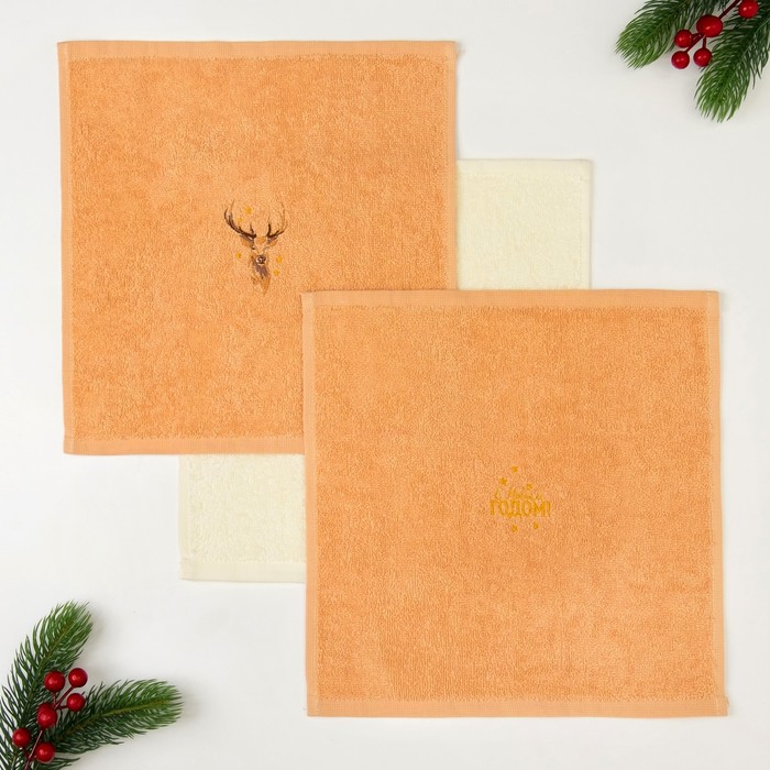 Набор полотенец "Новый год" 30х30 - 3 шт, 100% хл, 340 гр/м2