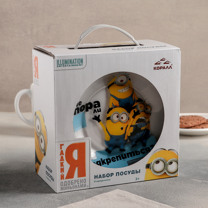 Набор посуды "Миньоны", 3 предмета: кружка 250 мл, салатник 13 см, тарелка 19,5 см