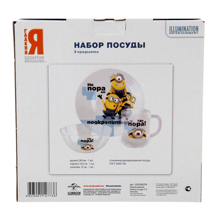Набор стеклянной посуды с изображением популярного героя понравится каждому ребёнку.